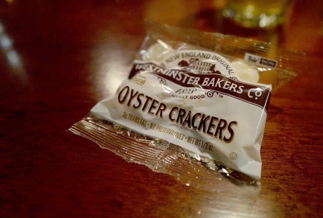 I Oregon har de egne poser med Oysters Crackers som de putter oppe i suppen. De smaker ingen ting og gir nok ikke mer enn litt krønsj.