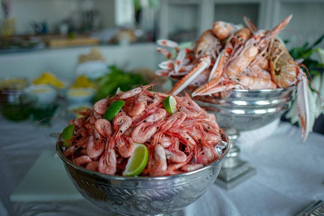 Etter cocktailtimen er det selvsagt klart for en nydelig fiskesuppe signert Husmorlykke-Kristin og herlige, lokale skalldyr. Noen av disse sjøkrepsene var på størrelse med kanadiske hummer. Jeg kødder ikke!