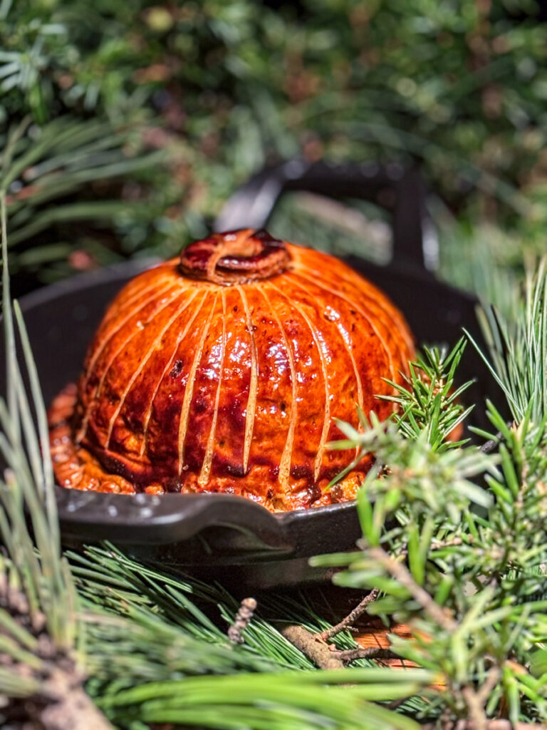 Tidligere på kvelden har vi fått presentert det som skal være kveldens kjøttrett. Et vakkert stykke lammesadel ligger på granbar sammen med en skinnende blank pithivier fylt med lammebog og brissel.