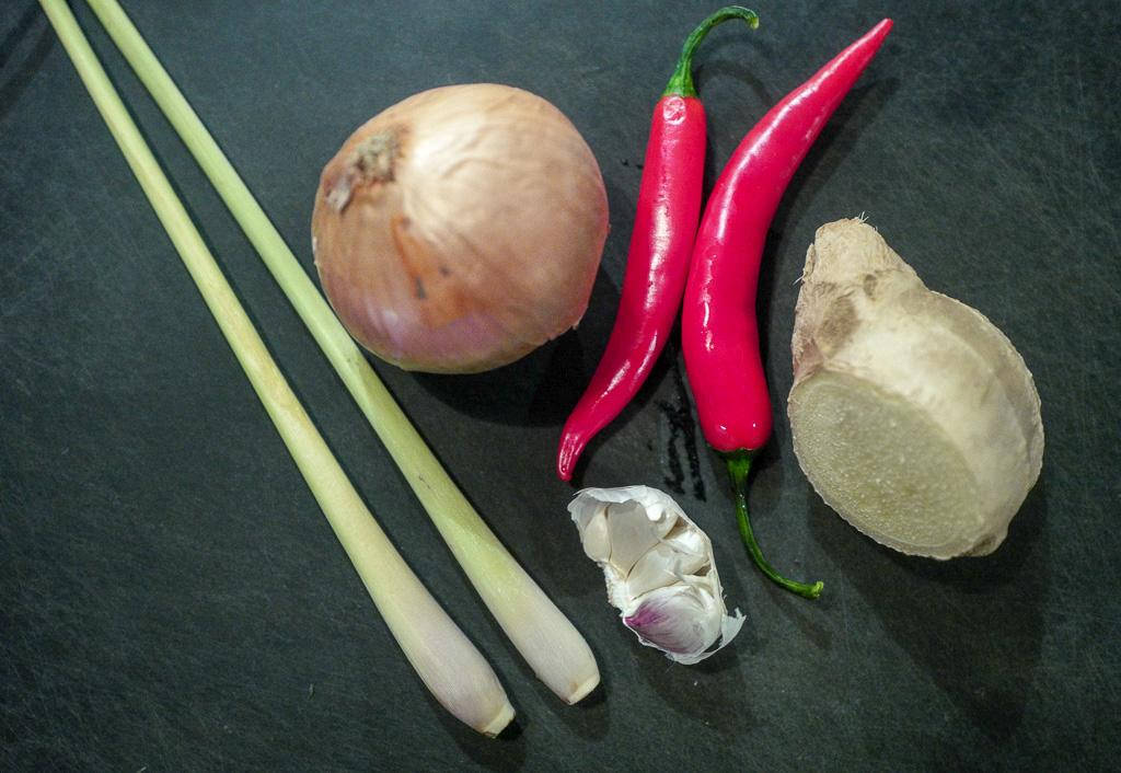 Ha det i pannen og bland i krydderpasten. La surre et par minutter og hell på kokosmelk. Dette kan småputre i ca 10 minutter. Legg så fiskestykker i sausen og trekk i ca 10 minutter. Sjekk med en spiss kniv og se om fisken er gjennomstekt i midten.