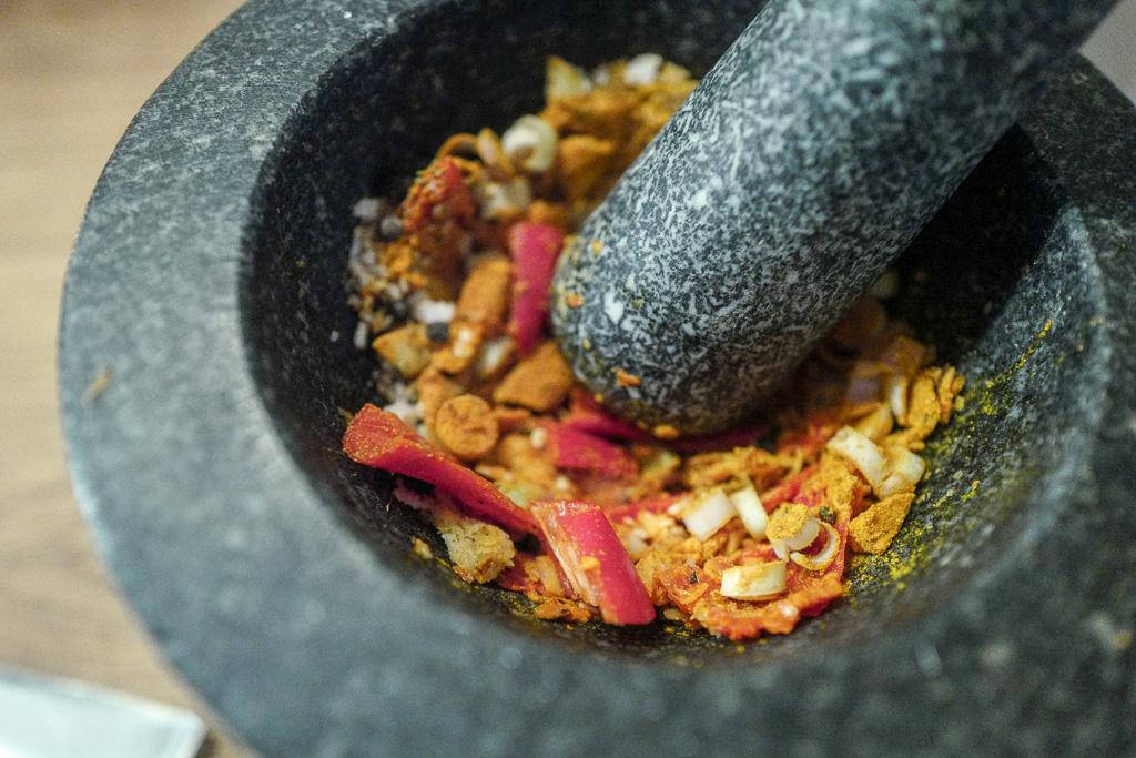 Finn frem en panne og hell 3 ss nøytral olje i. Ha krydderpasten i pannen og rør i noen minutter.