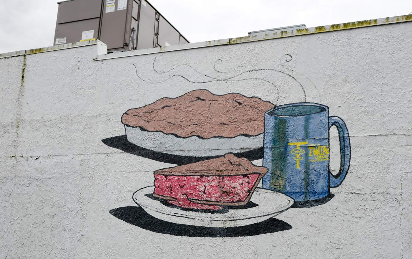Denne måtte vi selvsagt prøve. Og åpenbart med en kopp Damn Fine Coffee. Twede’s Cafe har pai på menyen. Med og uten iskrem. Kirsebærpaien er utsøkt. Lekker sprø skorpe. Deilig fuktig med masse bær i midten.