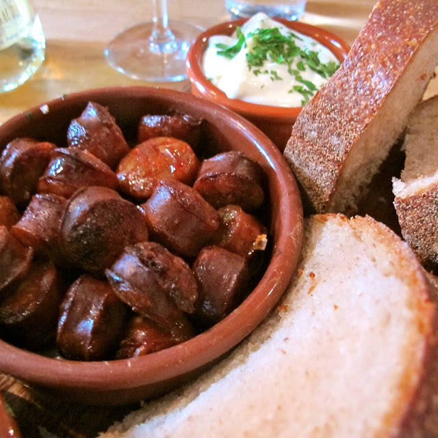 | Stekt chorizo, godt brød og en perfekt aioli. |