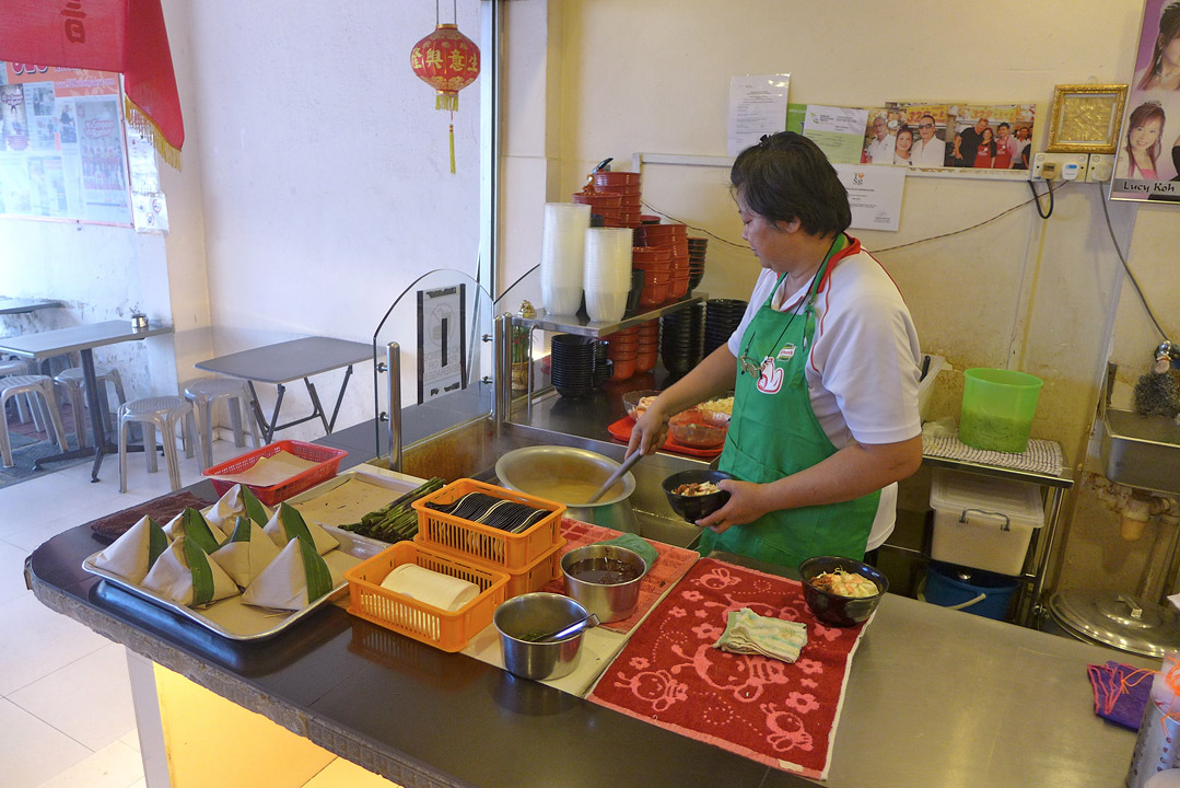 Vi kommer frem til dette laksa-stedet og ser at de har store plakater av Gordon Ramsay på veggene. Det viser seg at disse folka har konkurrert mot Gordon for noen år siden i en stor laksa-utfordring. Og 328 Katong Laksa vant! Jeg har sett tv-programmet der Gordon konkurrerer mot forskjellige Street Hawkers (gatemat-kokker) og det er jo ikke så rart at disse menneskene som er eksperter på en rett som de har servert i titalls år, vinner. Dette kan de. Dette er oppskrifter som har gått i arv.