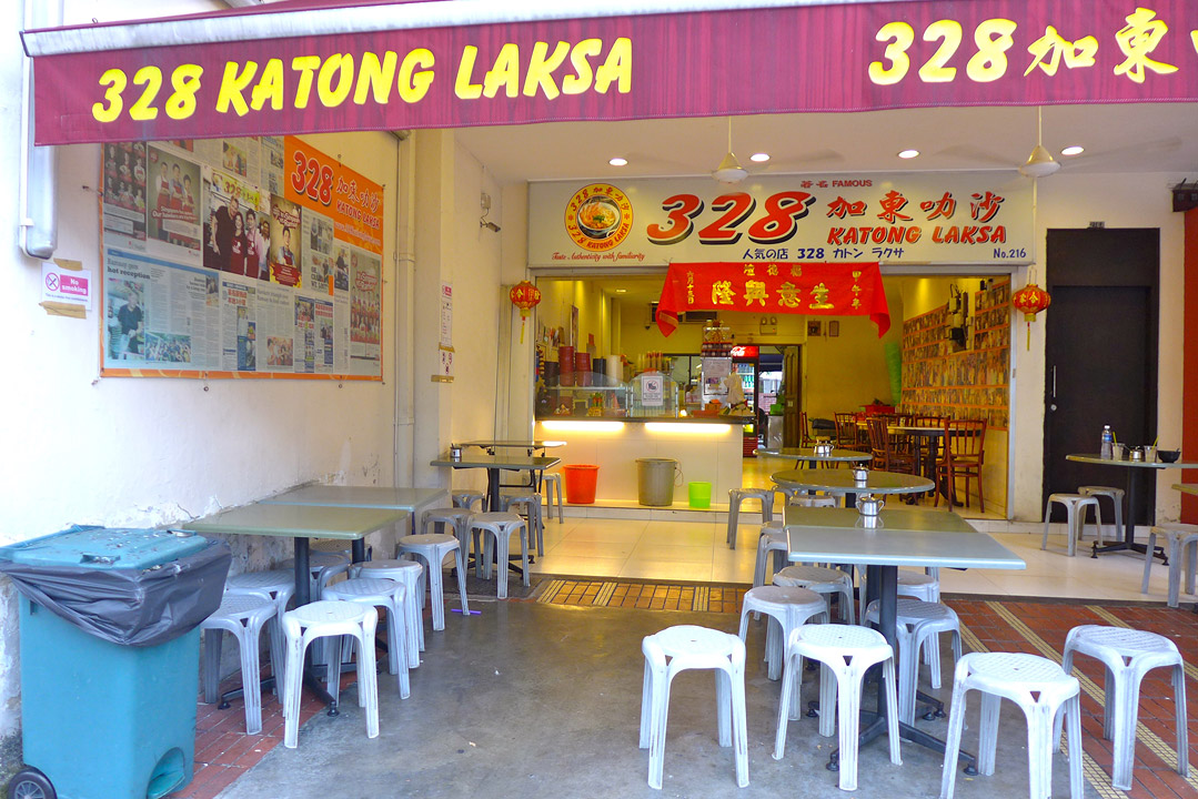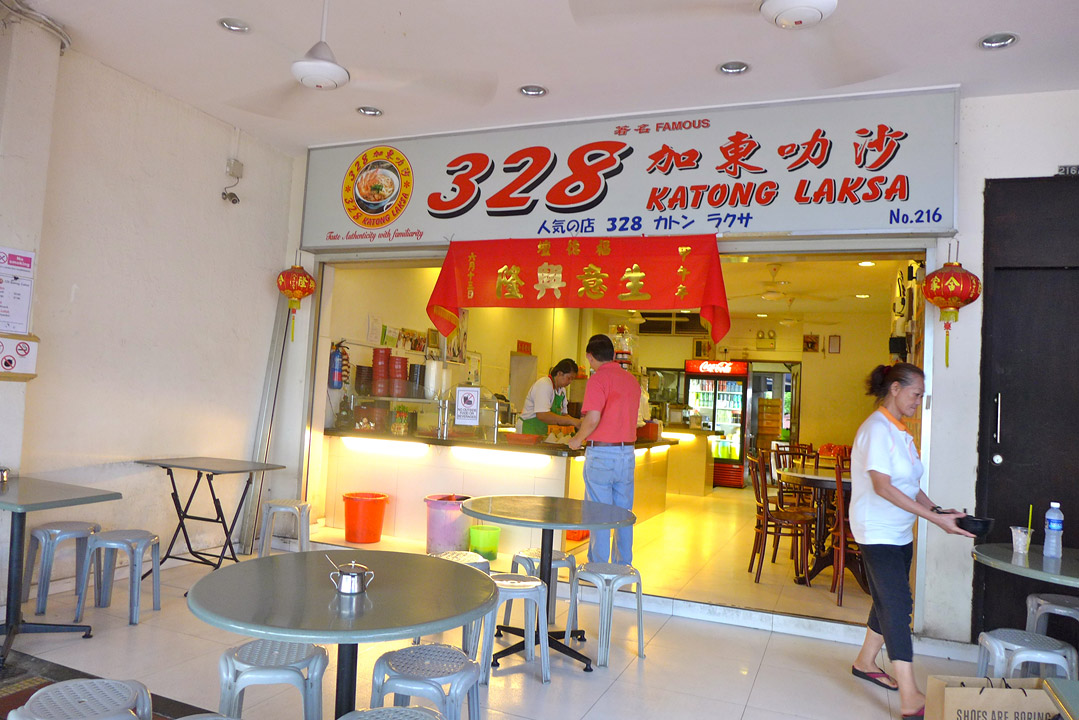 Erik og jeg hadde lyst å spise en av de 10 rettene som sies å være nasjonalrettene i Singapore. Vi spurte i resepsjonen på hotellet om de kunne guide oss til et bra sted der maten var ekstra god. «Har dere smakt laksa?», spurte mannen på hotellet. Nei, det hadde vi jo ikke. Han skrev ned et navn på en lapp «328 Katong Laksa» og ga det til oss. «Her, dette stedet vet alle taxisjåfører om». Suverent!