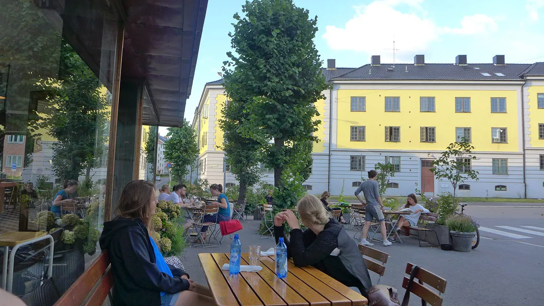 På Lofthus kan du sitte ute i solen eller inne i det stilige lokalet. Lurer du på hvordan du kommer deg hit? Ta 30-bussen og hopp av før du kommer til Nordpolen. Bussen kjører rett forbi restauranten.