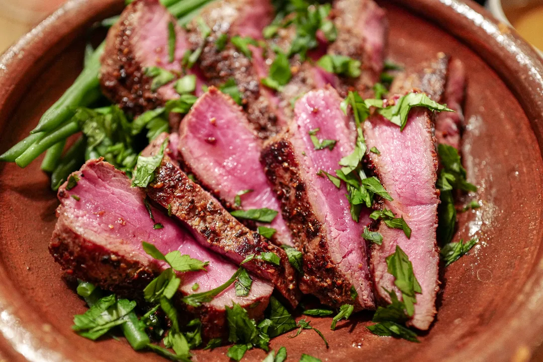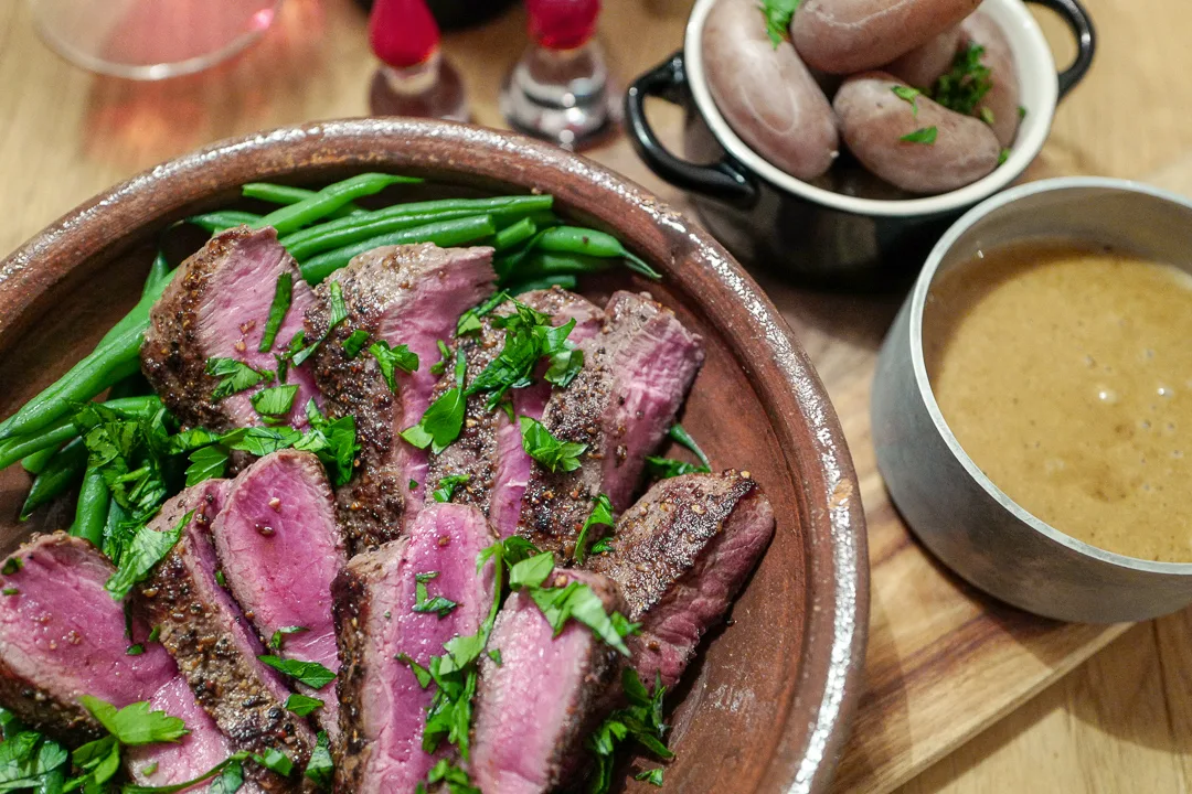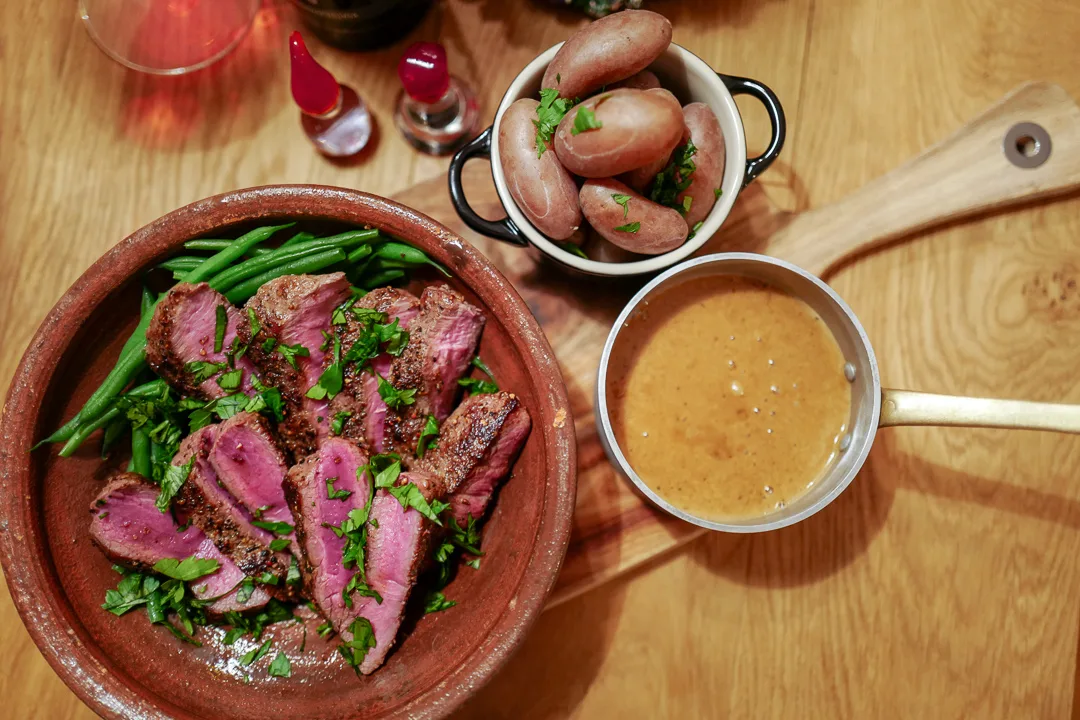 - Server sausen til kokte poteter, perfekte stykker av stekt viltkjøtt og grønne bønner. Bedre blir det ikke.
