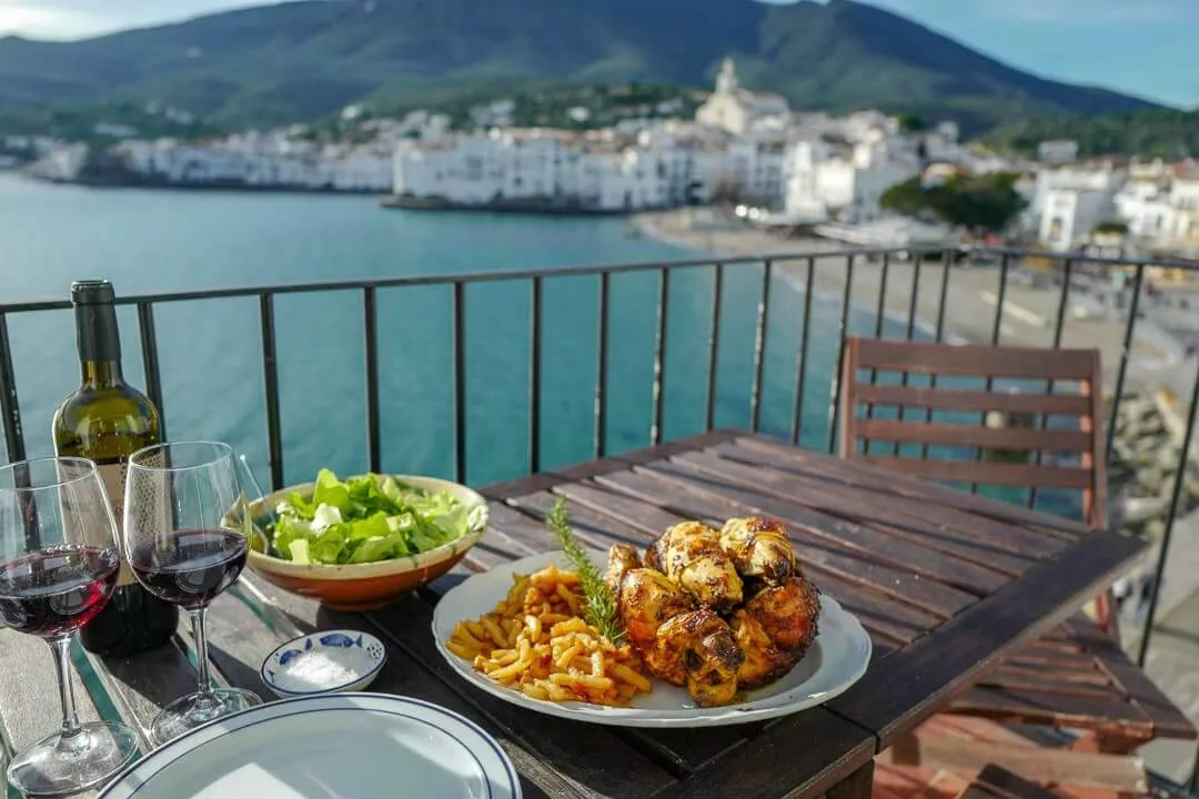 I sommer kom det et nytt spisested i Cadaques. Tre kamerater som vokste opp sammen i Cadaques startet Raviyu og siden i sommer har stedet vært et av de mest populære i byen. De serverer perfekte napolitanske pizza, grillet kjøtt (på Big Green Egg), salater, hjemmelaget pasta og ikke minst rotisseri-kylling. De settes inn i skapet på morgenen og så kan man kjøpe take away-kylling til lunsj eller spise i restauranten.