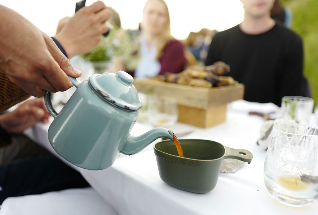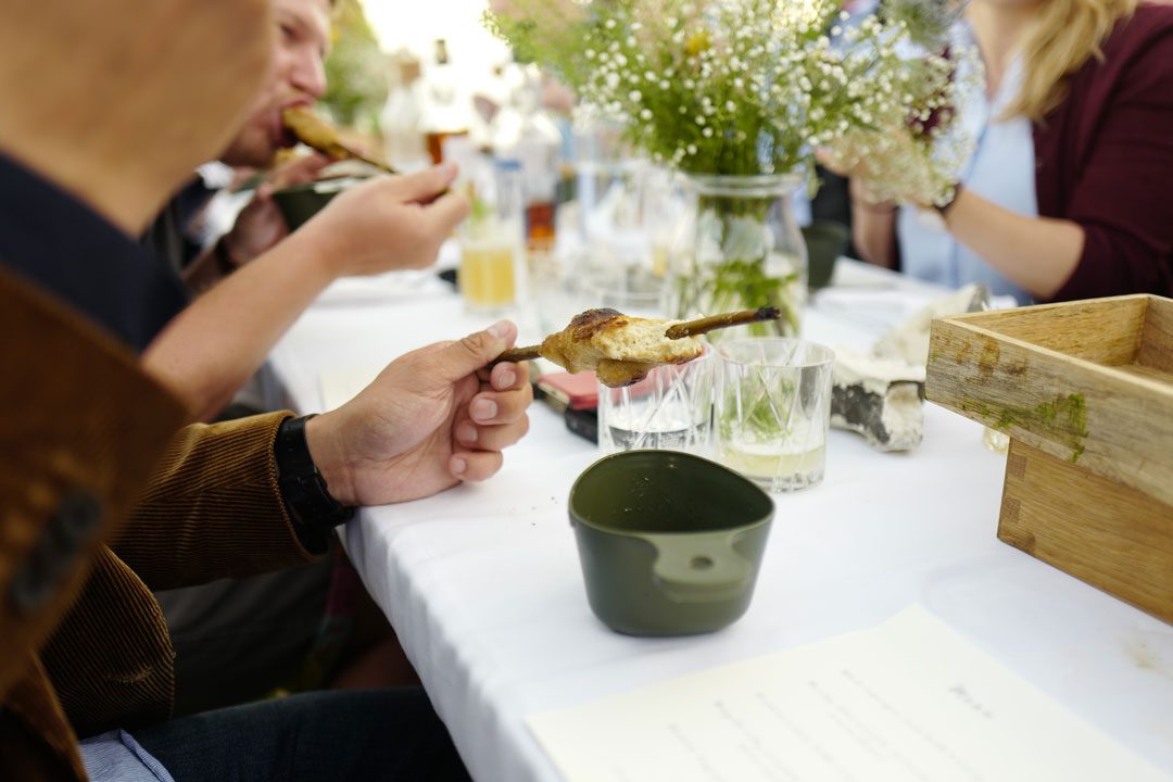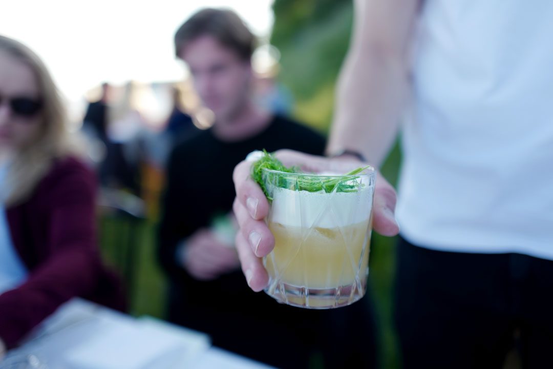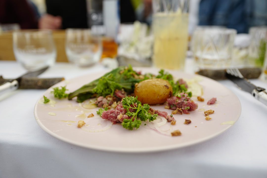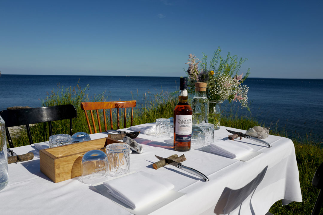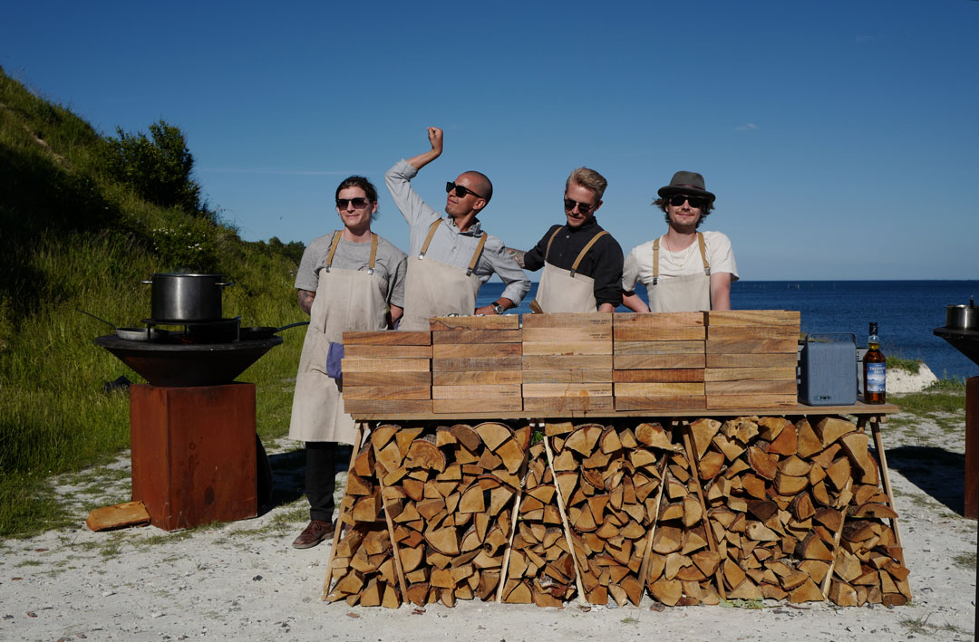Vi blir plukket opp av taxi og kjører en times tid sør for København. Vi skal til Stevns Klint der det på stranden er dekket opp til sommerfest. Maten står de flinke kokkene fra restaurant Agrikultur i Stockholm for.