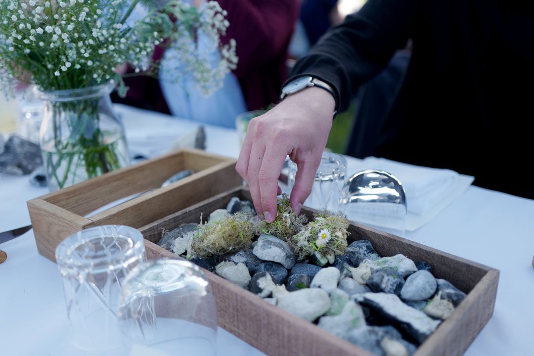 Det er den perfekte sommerdagen. Solen skinner og alle gjestene ankommer stranden med stjerner i øynene. Tenk at jeg er så heldig å skal få spise her i dag, tenker flere enn meg. Ja, vi sier det vel faktisk i kor. Vi ser tre festpyntede sommerbord i vannkanten. Jeg må klype meg i armen. Dette er noe av det vakreste jeg har opplevd. Så stemningsfylt.