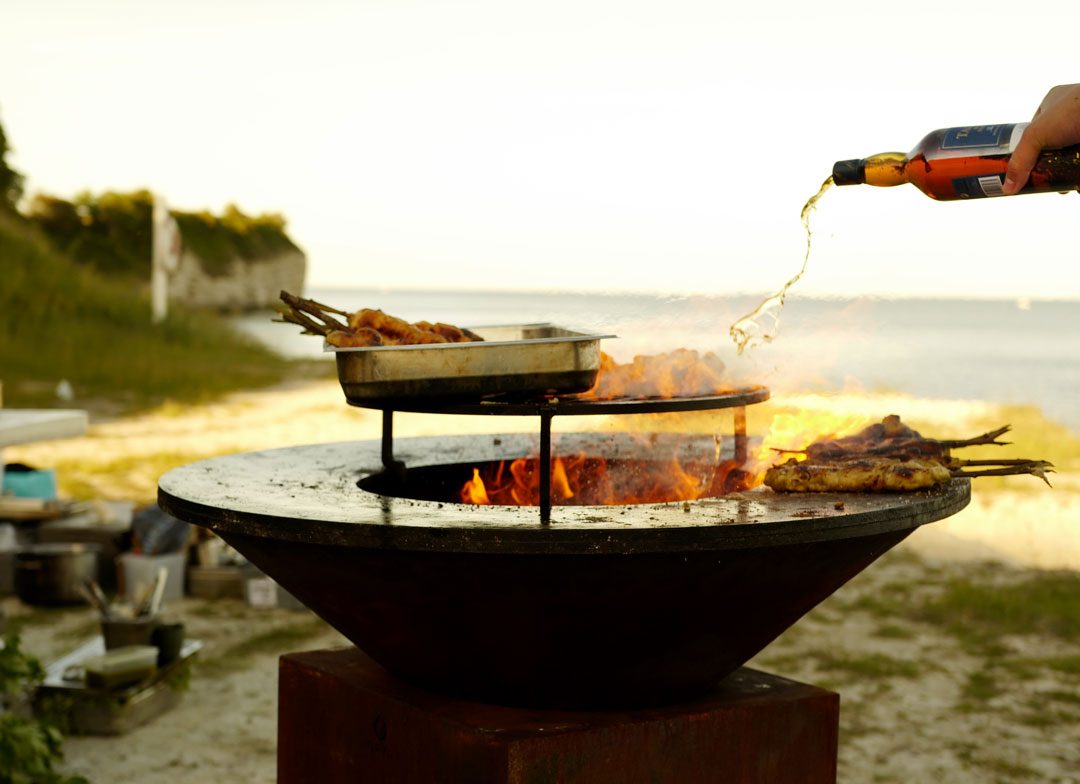 Filip, Joel og teamet står kokkelerer over to kjempebål. Dette er varmekildene og det er her maten lages.
