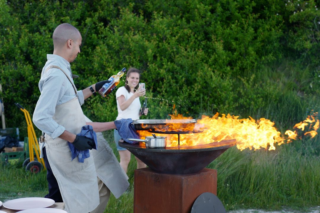 Filip Fastén (Årets kokk 2014 og Årets trøffelkokk 2015) og Joel Åhlin har tatt med seg teamet fra Stockhom og har laget et pop-upkjøkken på stranden.