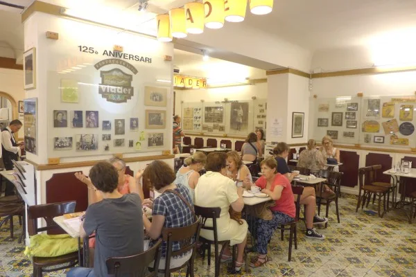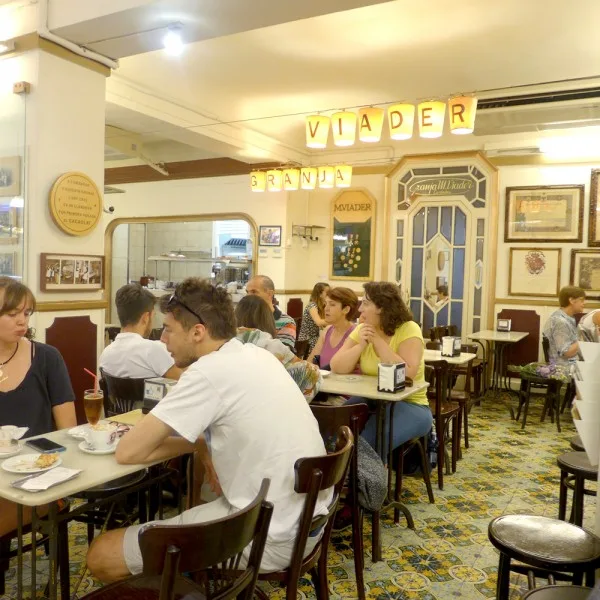 I Barcelonas trange smug er det mange fristelser. Her kan du fine spesialbutikker som selger hjemmelaget sjokolade, sukkertøy, matvarer og flotte grønnsaker. Jeg elsker å gå meg vill i nettverket av gater i gamlebyen, men jeg styrer unna de verste turistfellene. I den mer rufsete bydelen, Raval, ligger en Granja. Ordet betyr gård, og en granja selger gjerne produkter laget av melk. Granja M. Viader i Carrer Xuclà selger sjokoladeprodukter, oster og andre fine ting, men de har også en herlig kafé. Denne har ligget her siden 1931 og er en god gammeldags kafé med dresskledde servitører og damer med hatter. Her spiser du de beste churrosene i hele Barcelona! Vet du ikke hva churros er? Det er fjærlette smultringer som er frityrstekte og som etter dette har fått et dryss sukker over seg. Disse brekkes av i biter og dyppes i en kopp med veldig tykk og varm sjokolade. Det er den perfekte frokosten hvis du liker søte saker eller du har planlagt å løpe tre-mila.