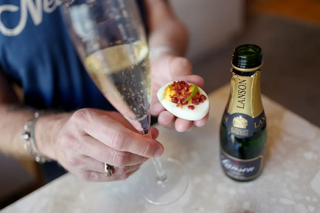 Teaterdronningen Wenche Foss likte et kokt egg sammen med sin favorittchampagne. Selv liker jeg et deviled egg.