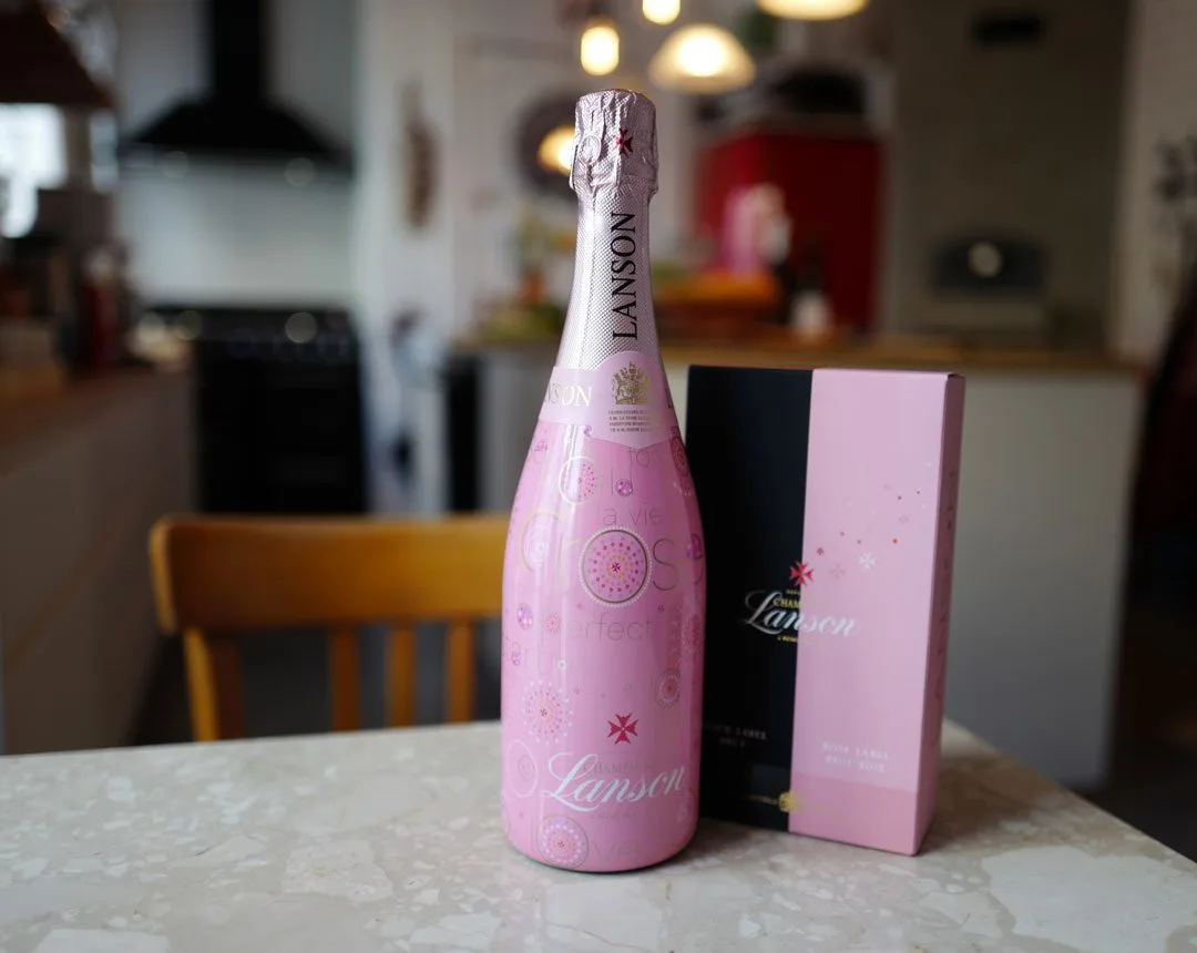 Lanson Rose Label Brut Rosé inneholder Pinot Noir 53%, Pinot Meunier 15%, Chardonnay 32%. Flasken er et syn i seg selv og den perfekte gaven å ta med på fest.