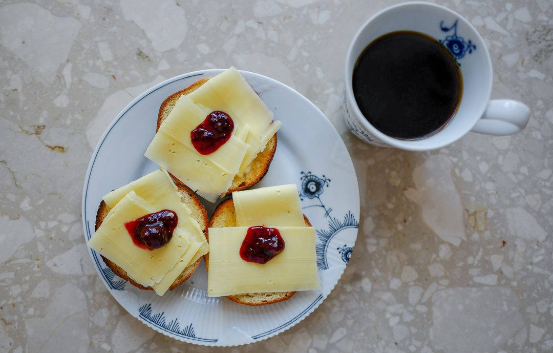 Sett i forvarmet ovn på 200 grader i ca 15 minutter. Avkjøl på rist og nyt med smør, ost og syltetøy.