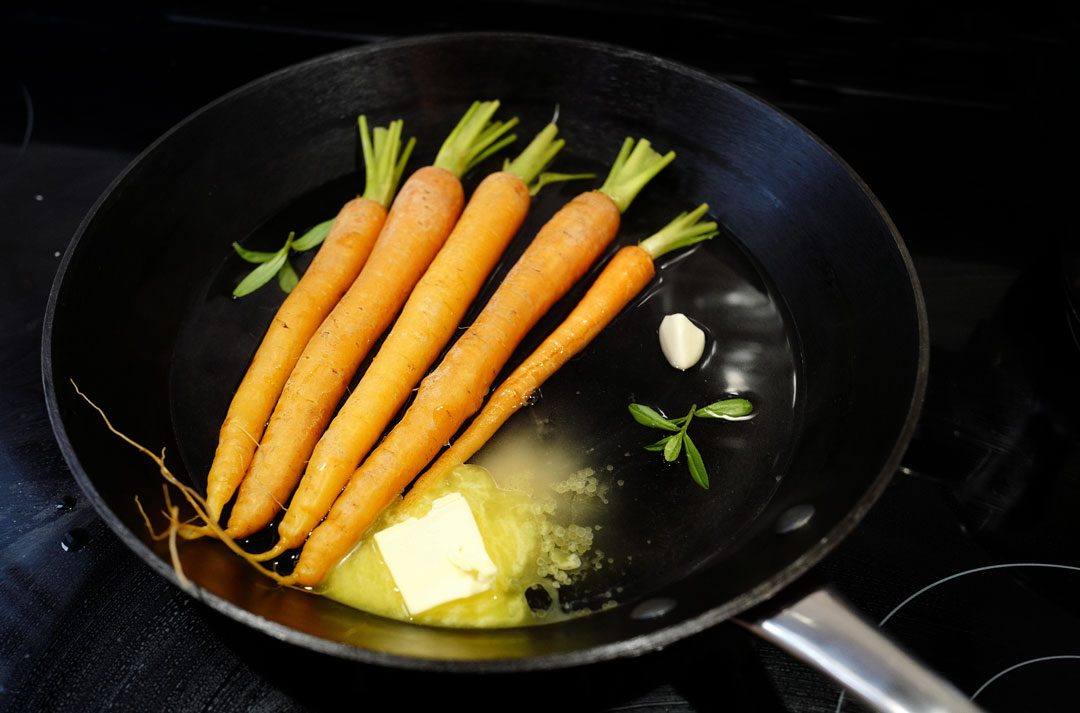 Selve gulrøttene vaskes. Rens festet for jord og la det være igjen litt grønn bust. De største gulrøttene kan forkokes noen minutter.