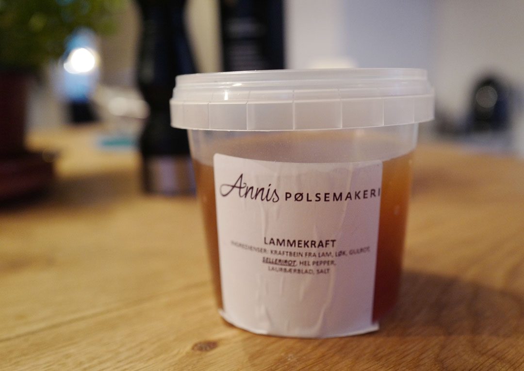 Flere steder driver med den type tørrmodning nå, og i Mathallen er det Annis Pølsemakeri som har varene. Jeg stakk bort til Daniel og fikk med meg en fabelaktig lammesadel og et beger lammekraft. Skal man ha et slikt kongestykke av lam, må også sausen sitte. Holder ikke med posesaus da. (Det gjør det vel egentlig aldri).