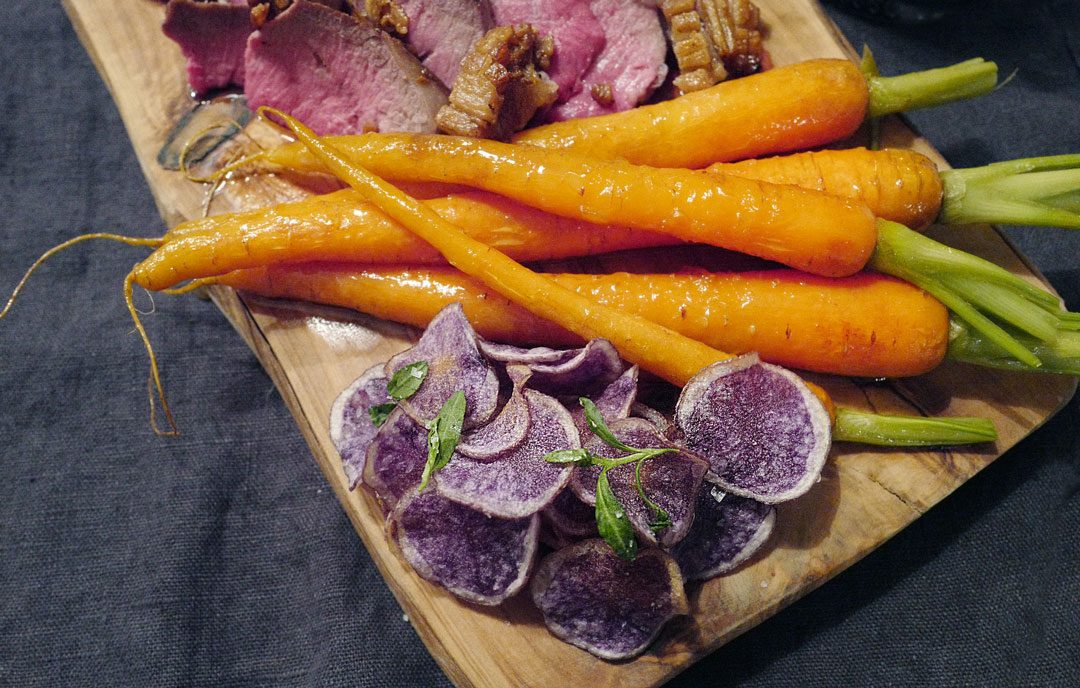 Blåpotetchips: Du må jo ikke ha det, men det gjør seg veldig på fatet og så smaker de helt fantastiske. Det er jo potetgull. Det er alltid godt. Også til mat. Jeg brukte en halv blåpotet til denne retten, og hvis du er av den typen som synes 64 kr per kilo for blåpotet er hårreisende, må jeg sette deg på plass. Hvor mye trenger du for å jazze opp en rett? I rest my case. Jeg brukte akkurat 2,5 kroner…