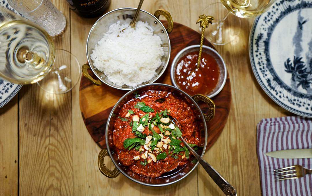 Indisk mat er matlaging der man må bygge smaker, litt etter litt. Det som var hovedproblemet med oppskriften som jeg brukte var mengden tomat. Jeg brukte kvalitetstomater slik jeg pleier, men mengden var alt for mye og jeg tilsatte ca 1 dl kokosmelk for å balansere syren i retten. Med lang innkoking ble det en veldig god karrirett. Så tilgi meg, Alfred Prasad, men jeg har altså kødda med oppskriften din.