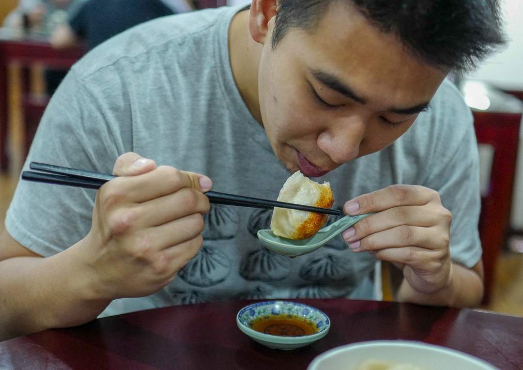 Xiaolongbao spises på denne måten: Man tar en Xiaolongbao med spisepinne, godt støttet opp med en suppeskje. Så biter man et lite hull i bunnen og enten suger ut kraften eller lar suppen renne ut i skjeen. Man slurper i seg suppen og dypper så Xiaolongbao’n i en skål med sort eddik og spiser. Det er en nytelse å spise og når du først har fått dilla på disse, må du ha dem – hele tiden.