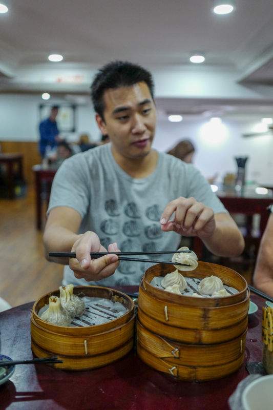 Xiaolongbao – kongen av dumplings i Shanghai. Disse kalles Soup Dumplings fordi inne i dumplingen er det flytende kraft. Hvordan får man kraft inne i en dumpling? Jo, man legger en kube med kraft i geléform i dumplingen når man lager den og når den varmebehandles smelter geléen til den deiligste suppe.