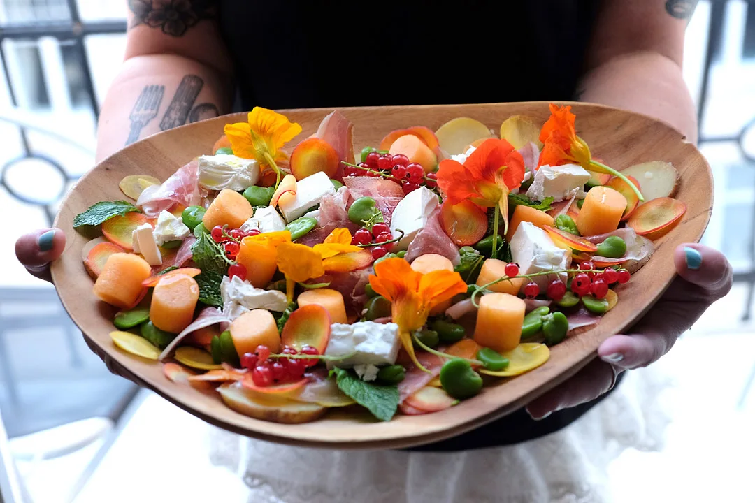 Sommersalat med ingredienser fra slang, Bondens Marked og nærbutikkene på Frogner: