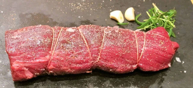 | Det er lurt å binde opp kjøttet slik at du får en «rull» som er jevn i størrelse. Det er mye lettere å steke et slikt stykke slik at resultatet blir saftig. |