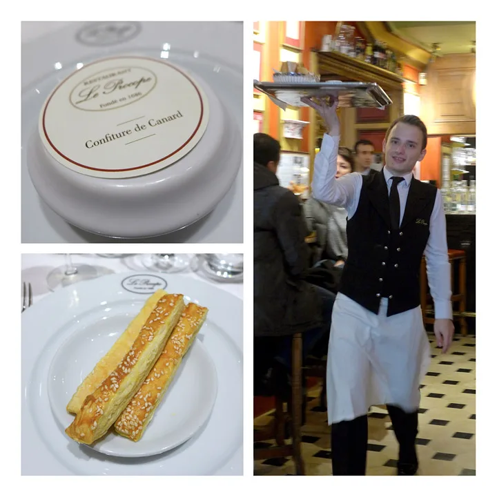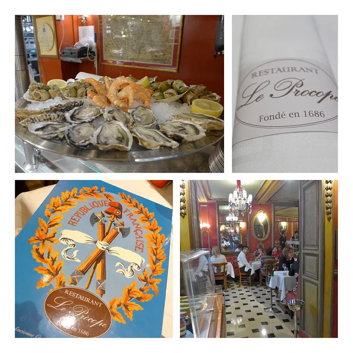 Det er klart, har du holdt på siden 1686 kan du skryte på deg å være en serverdighet. Og Le Procope er en klassiker. Vi har spist der mange ganger, og det er ikke å legge skjul på at det har veldig mange andre mennesker også gjort. Fra hele verden. Voltaire var fast gjest her. Det var også Balzac og Robspierre. Historiske navn fra nedstøvede bøker. De har faktisk drukket sin kaffe her. For dette går for å være verdens eldste café.