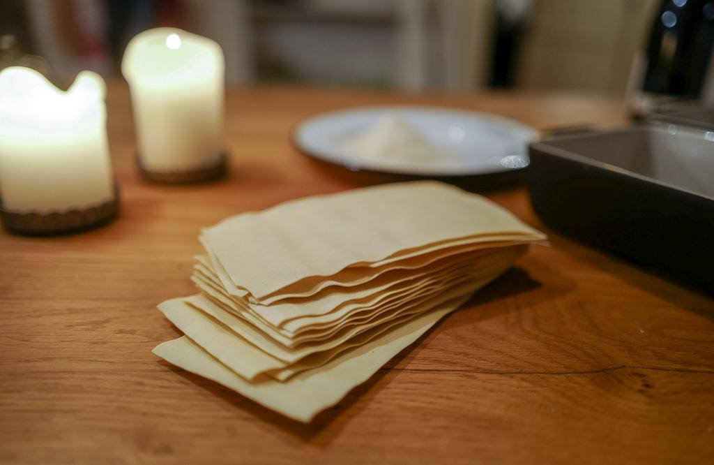 Du kan selvsagt lage pastaen selv. Det er alltid bra. Min pastamaskin er ødelagt for tiden, så jeg kjøper vanlige pastaplater som jeg koker noen få minutter slik at jeg kan skjære i dem og få dem til å passe perfekt i formen.