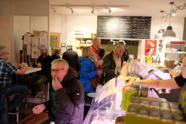 Jessens Saluhall & bar har også After Work og de serverer pinxos og lokalt øl. Det er full trøkk og god stemning inne på de koselige utestedene i Visby. Utenfor blåser det kraftig, men inne er det lunt og raust.
