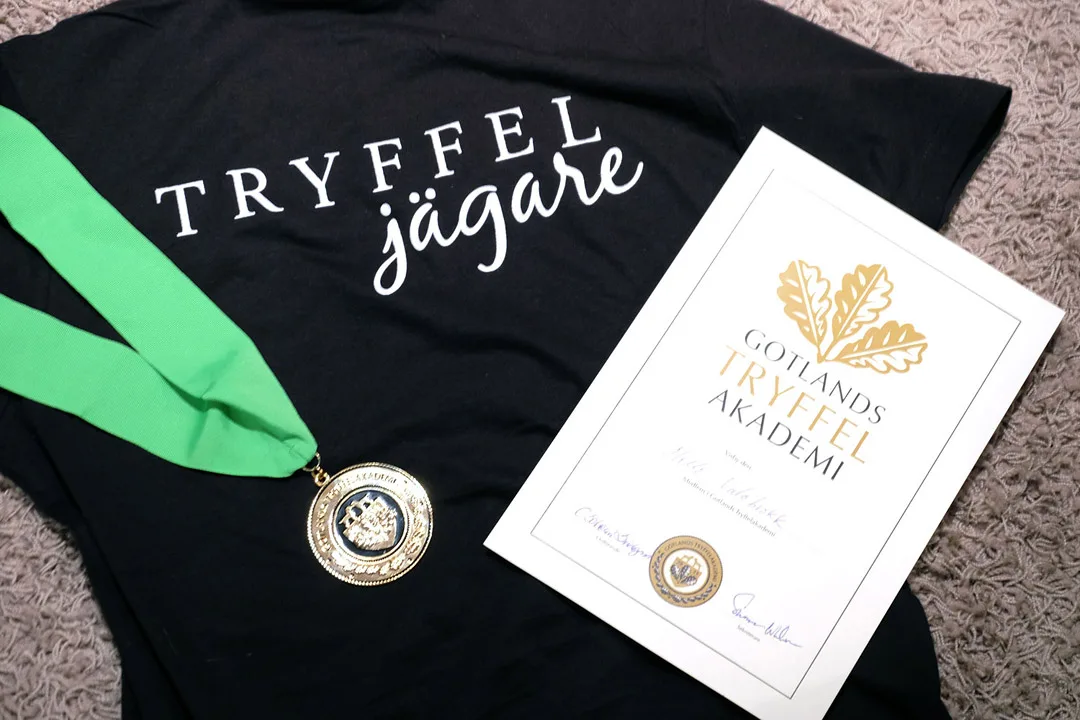Vi ankommer en fredag og i byens kjøpesenter har trøffelforeningen satt opp stand. Unge, lovende kokkespirer serverer smaksprøver på trøffelrisotto, trøffelkrem, og trøffelsmør. Øyas trøffeljegere selger trøfler og trøffelartikler som bøker og t-skjorter (med trøffeljeger på ryggen. Jeg måtte selvsagt kjøpe en). Jeg må innrømme at dette er rimelig spesielt. Her står vi mellom H&M og Ica og smaker noe av det mest eksklusive produktet naturen har å tilby. Og det oser stolthet i lokalet. Hos unge som eldre. Dette er Gotlands gull.