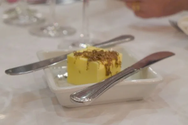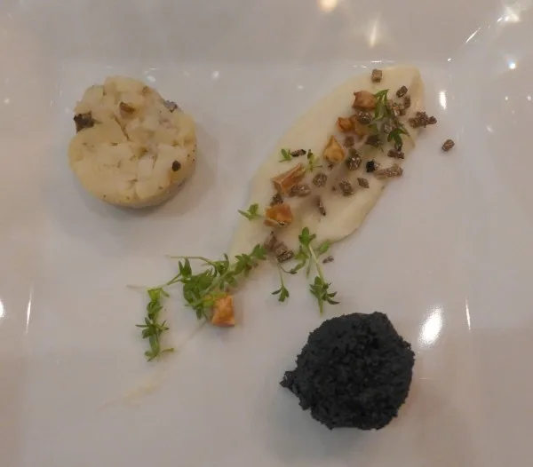 Vi skal videre, for vi har bord på en fabelaktig fiskerestaurant i byen, Bakfickan. Som flere restauranter i Visby denne helgen, serveres det trøffelmeny. Vi kjører fire retter der og alle (unntatt desserten) innholder gotlandske trøfler. Restaurant Italienaren serverer også en spennende trøffelmeny og har til og med en egen pizza med italiensk salsiccia med sopp og trøffel. Her spiser vi søndag.