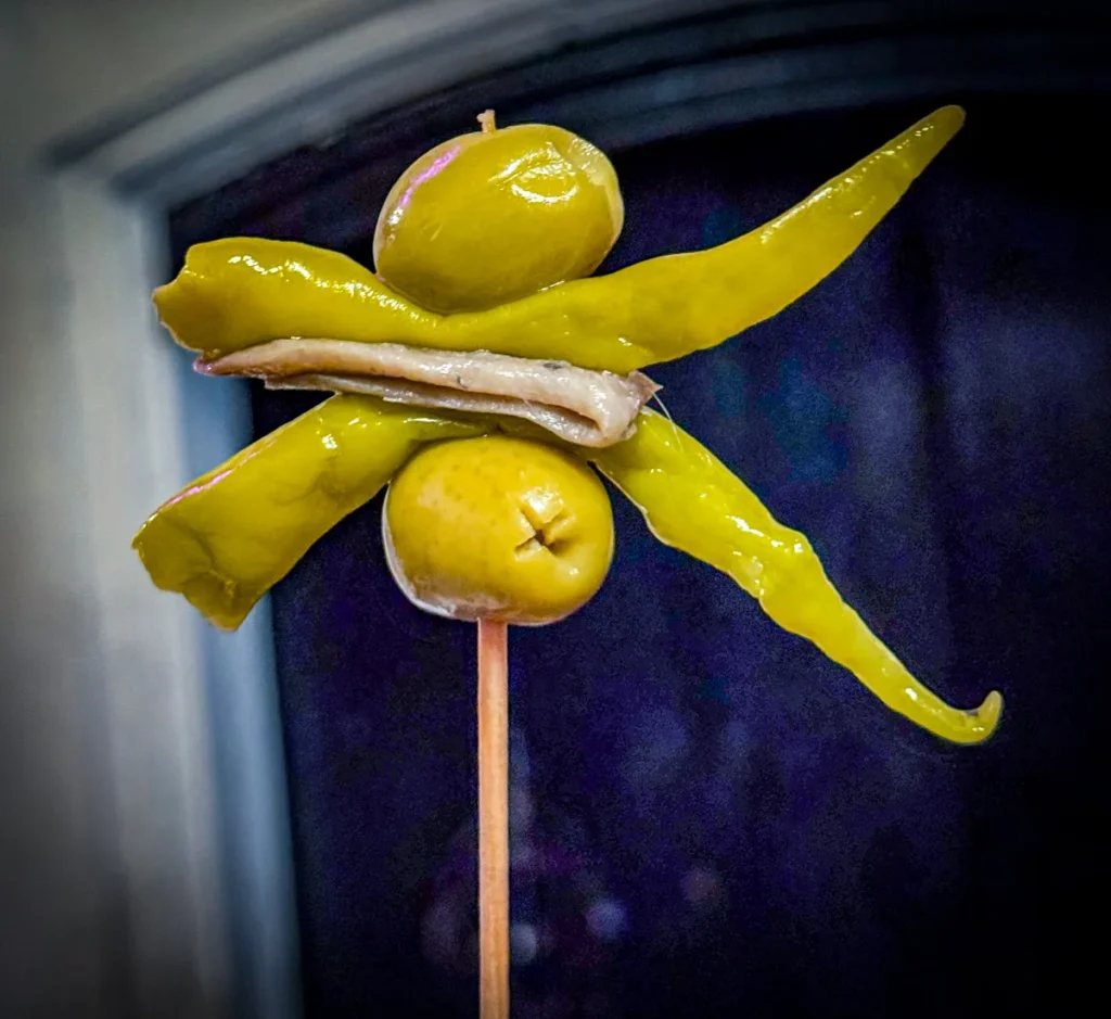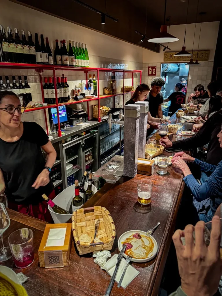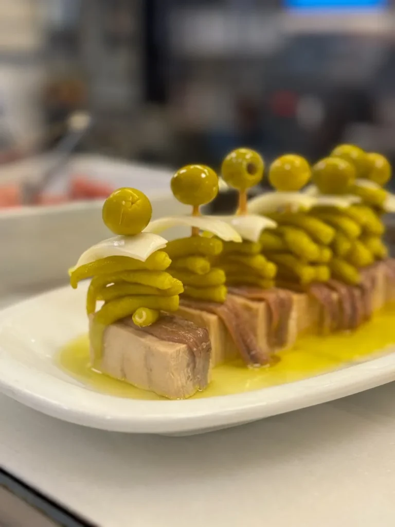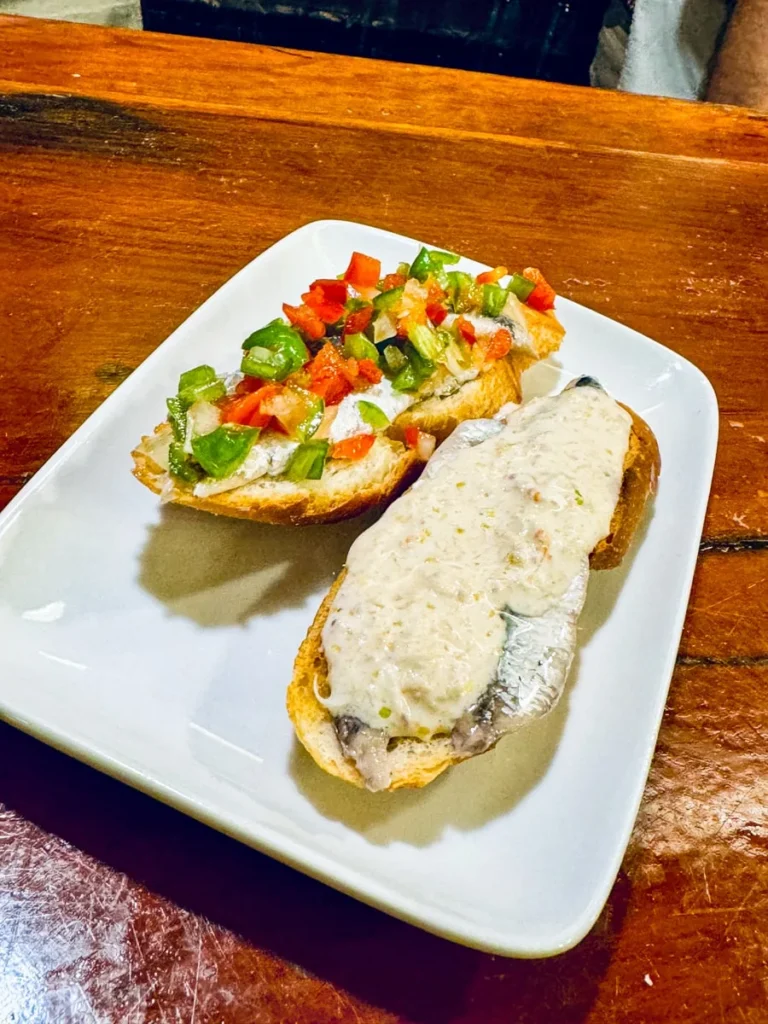 Det som gjør det ekstra gøy å gå på pintxos-runde er at mange av stedene har sine spesialiteter som ingen andre har, og det er det som er tilfelle på Bar Txepetxa der det handler om ansjoser og sardiner. Marinert og speket, med og uten topping (jeg digger især den med krabbekrem). Alle bestilles, lages á la minute og serveres på ristet brød. Stedet har forresten ligget der i over 100 år, men det er det også andre barer i området som har gjort.