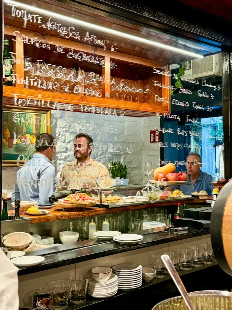 Midt i den koselige delen av Gros finnes du en av filialene til Bodega Donostiarra der du, foruten klassiske baskiske retter, også finner et deilig utvalg pintxos. Prøv Pintxos Indurain som er en slags Gilda på toppen av en blokk med bonito del norte (hvit tunfisk). Umulig å spise med hendene, så kniv og gaffel er nødvendig. Sjekk også ut deres ensaladilla rusa, som er en slags italiensk salat (slik det heter i Norge) med potet, majones og ansjos. Deilig å scoope opp på et stykke brød.