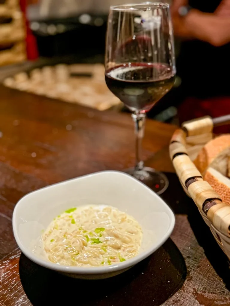 Dessverre har de pusset opp lokalet, noe jeg synes er skrekkelig synd, for det gamle interiøret var fint, men maten er uansett den samme og den er alltid god. «Risottoen» deres som er laget av orzo (pastaris) og den lokale røkte osten Idiazabal er et must å bestille. Det er også sprøstekt svineøre og «kebab» av lam.