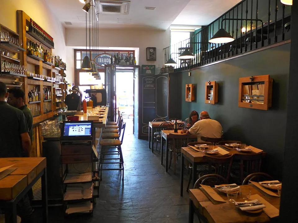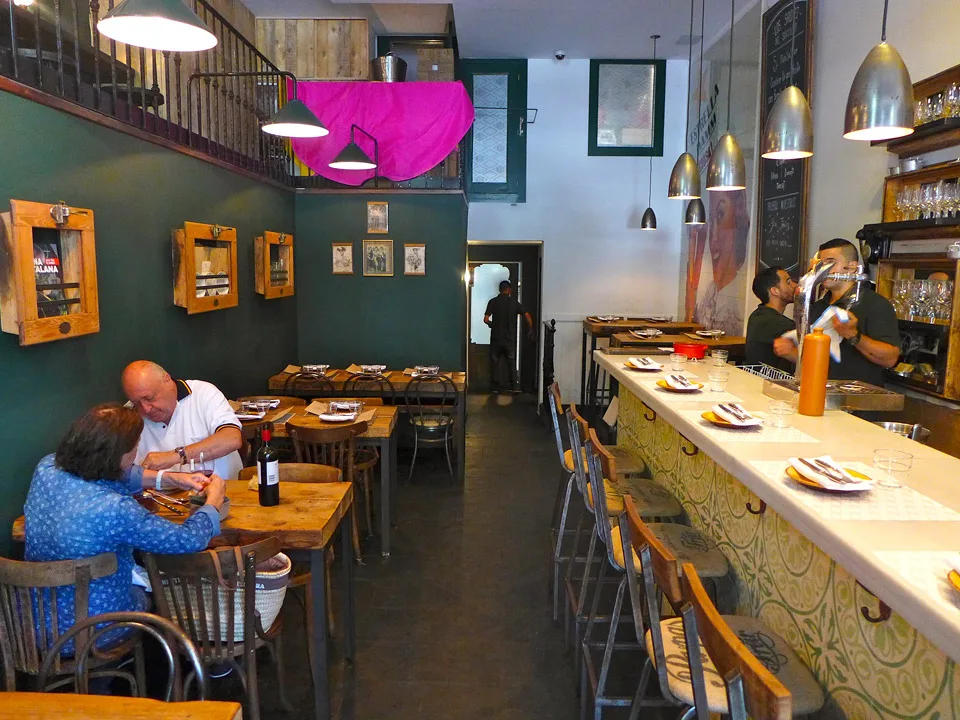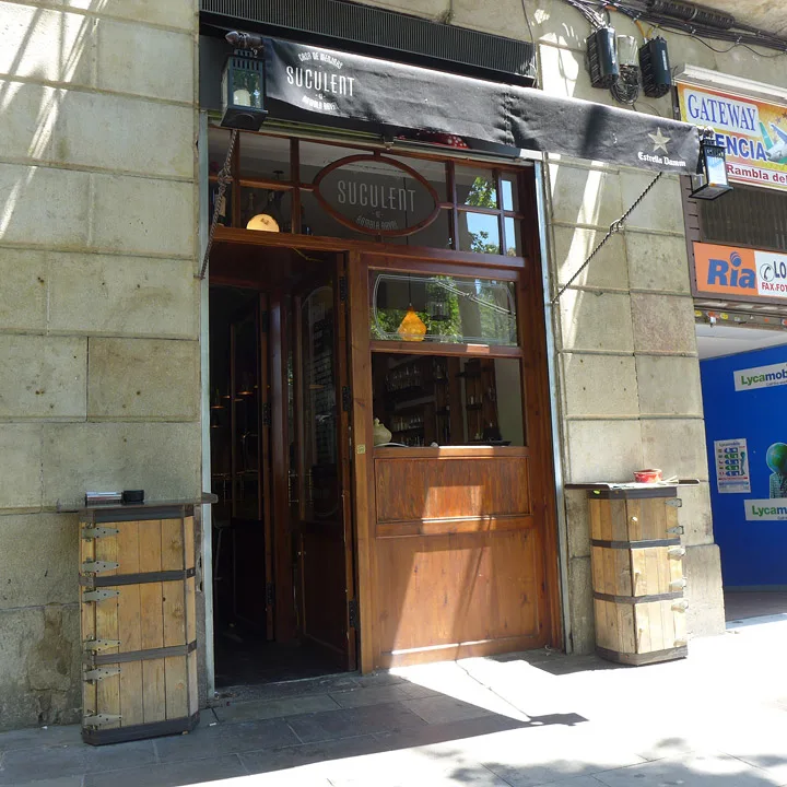 På Rambla de Raval i Barcelona ligger to restauranter signert den talentfulle kjøkkensjefen Charles Abellan. Han står bak suksesser som Comerc 24 og Tapas 24. Suculent og Taverna de Suculent ligger nesten side om side i det belastede strøket i Raval. Jeg besøkte Suculent ved to anledninger denne sommeren, og er strålende fornøyd. Du kan sitte utendørs – noe som er supert på dagtid til lunsj. Palmetrærne fungerer som deilig skygge for solen. På kvelden er det hyggelig å trekke inn i lokalet. Også for å skjerme ørene for alle politisirenen som uler forbi hele tiden. Denne delen av Raval er litt belastet. Narko-dealere, prostituerte og byens løse fugler dominerer strøket, men ikke la deg skremme av det. Jeg velger å kalle det fargerikt.