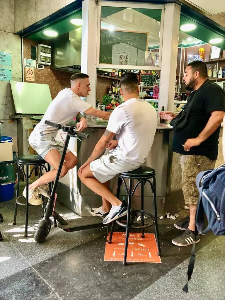 I stedet for å sitte på hotellet å spise frokost vil jeg heller ut i gatene og suge til meg morgenstemningen når jeg kommer til en ny by. På Rio bar café kommer folk innom før jobb. Du finner den gamle mannen som er innom hver dag for å få sin kaffe. Forretningsmannen som er på vei til flyplassen. Damen som kjøper en pakke sigaretter fra automaten og tar en kaffe på veien. Du finner også arbeidskara som setter utstyret på utsiden før de går inn og bestiller hver din Carajillo med 50/50 kruttsterk kaffe og brandy.