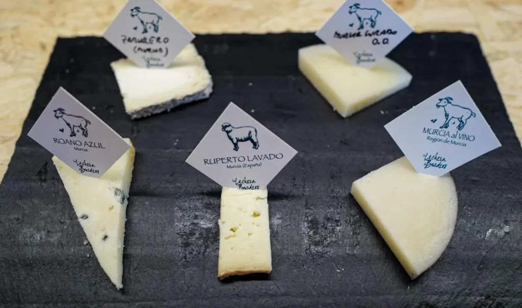 Jeg mener ikke bildet Lechera de Burdeos (Milkmaid of Bordeaux) som henger i Prado-museet i Madrid, men ostebutikken i Murcia som spesialiserer seg på ost og vin i kombinasjon. Ostene er gjerne lokale geitemelksoster. Den deilige ostebutikken ligger rett ved matmarkedet. Vi smakte på disse ostene fra Murcia: