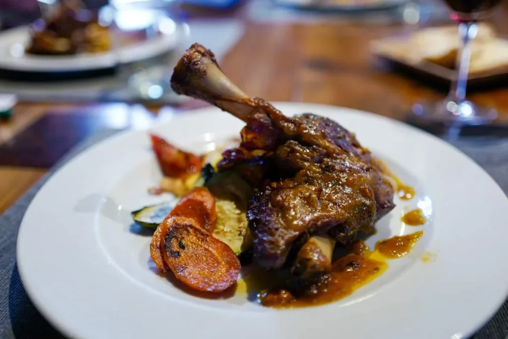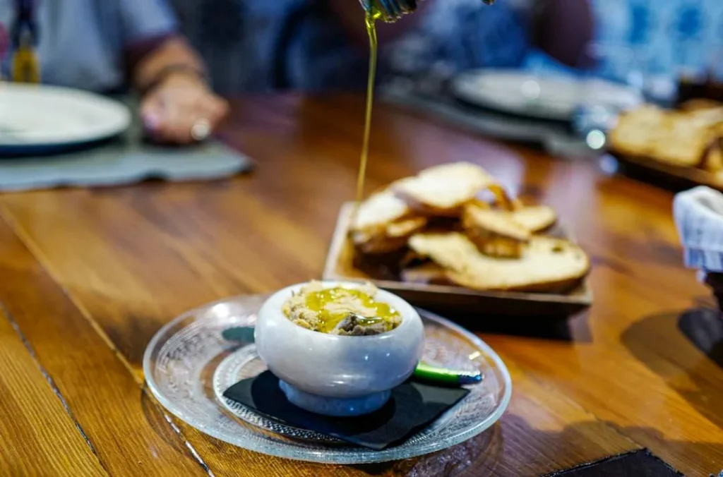 La Almazara serverer altså så nydelig mat. Lokale retter med flott presentasjon. Jeg fikk en av de beste bacalaorettene jeg noen gang har smakt. Fisken var røkt og servet med blekksprutblekk og en potetpure. Jeg fikk også fylte tomater med grillet paprika og salt og tørket fisk, rapphønepate med lokal olivenolje (som var sjuuukt god) og langtidsstekt lammeskulder som falt fra hverandre bare jeg så på den.