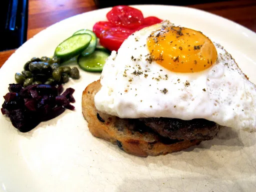 Stek et egg eller ha en rå eggeplomme på toppen.