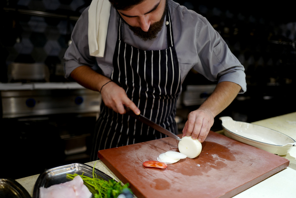 Retten jeg lager er inspirert av et besøk jeg nylig hadde på restaurant Cookoovaya i Athen. Jeg lærte å lage en superlett fiskerett (uten reker) som kun består av hvit fisk, tomater, poteter, løk, persille og masse olivenolje. Dette er retten jeg vil gjenskape, dog med reker i tillegg. Det viste seg å være skikkelig lurt, for retten ble en umiddelbar hit her i huset.