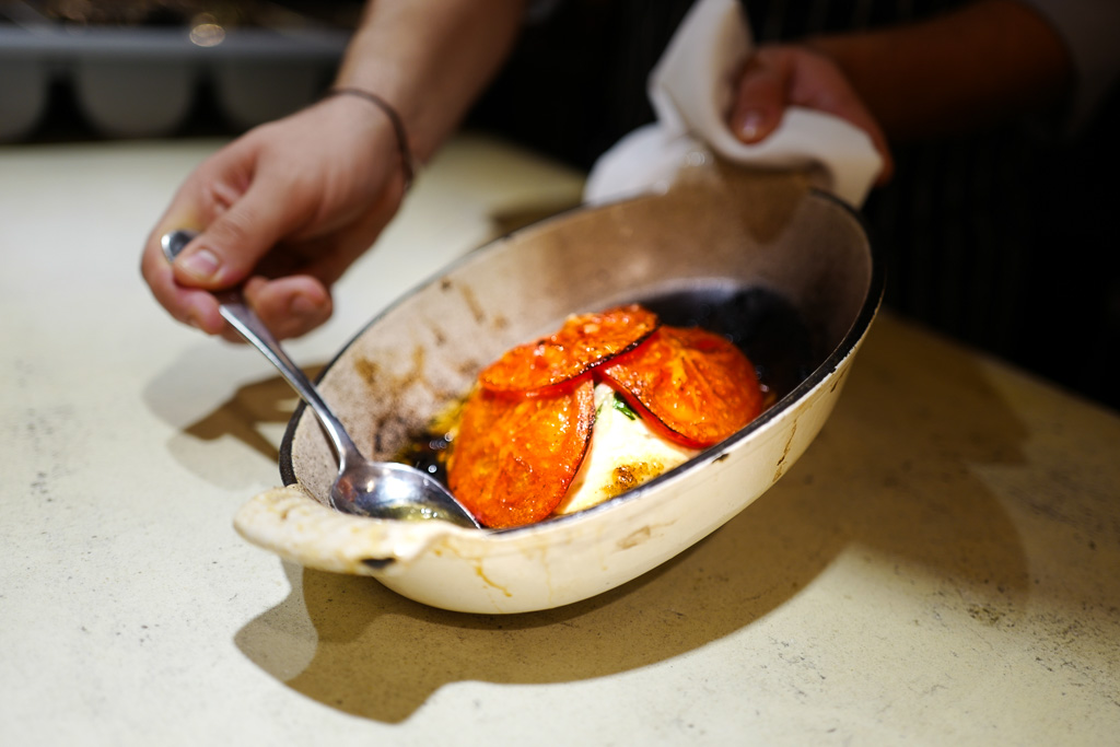 Og så heller du litt mer extra virgin olivenolje over retten før servering. Det høres ut som dette er mye olje, men det blir en del av sausen og det er god olje, og derfor bra for deg.