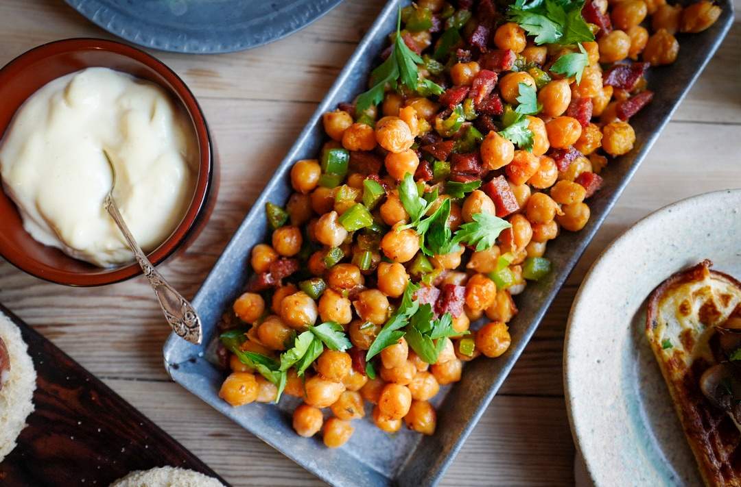 Kikerter stekt med røkt paprikapulver er noe av det aller beste jeg vet. Og tilsetter du chorizoterninger og grønn paprika i samme blanding får du en herlig rett som er perfekt å spise med hjemmelaget hvitløksmajones på siden. Jeg har brukt Pablo fra Ask gård – en knakende god chorizo-pølse for den som er kresne på det feltet. Og det er man jo.