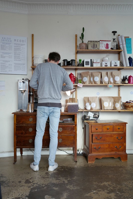 Reykjavik Roasters har strålende kaffe. De ligger i et lite hvitmalt hus ikke så langt fra den store kirken som ruver over byen.