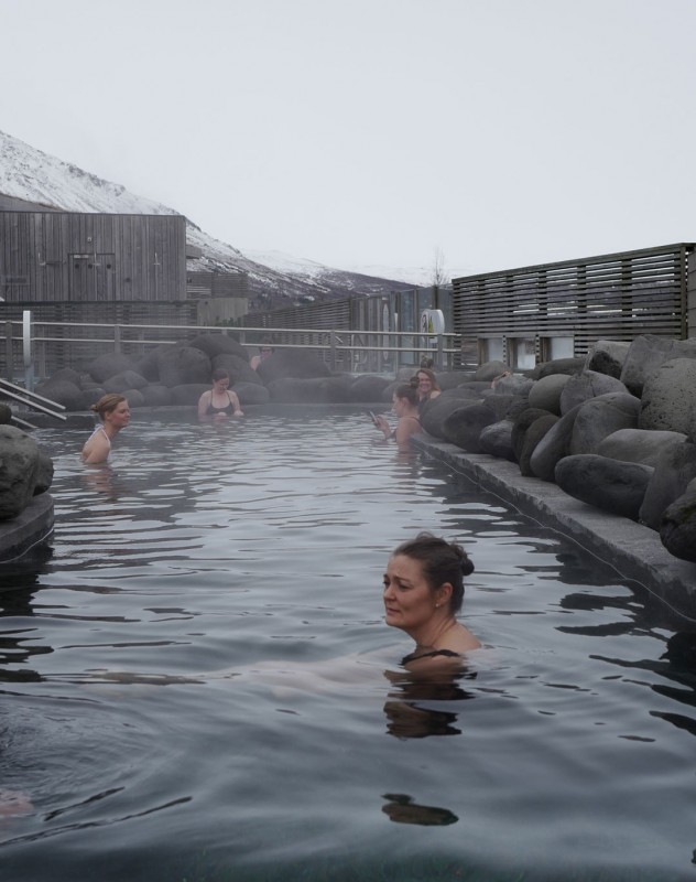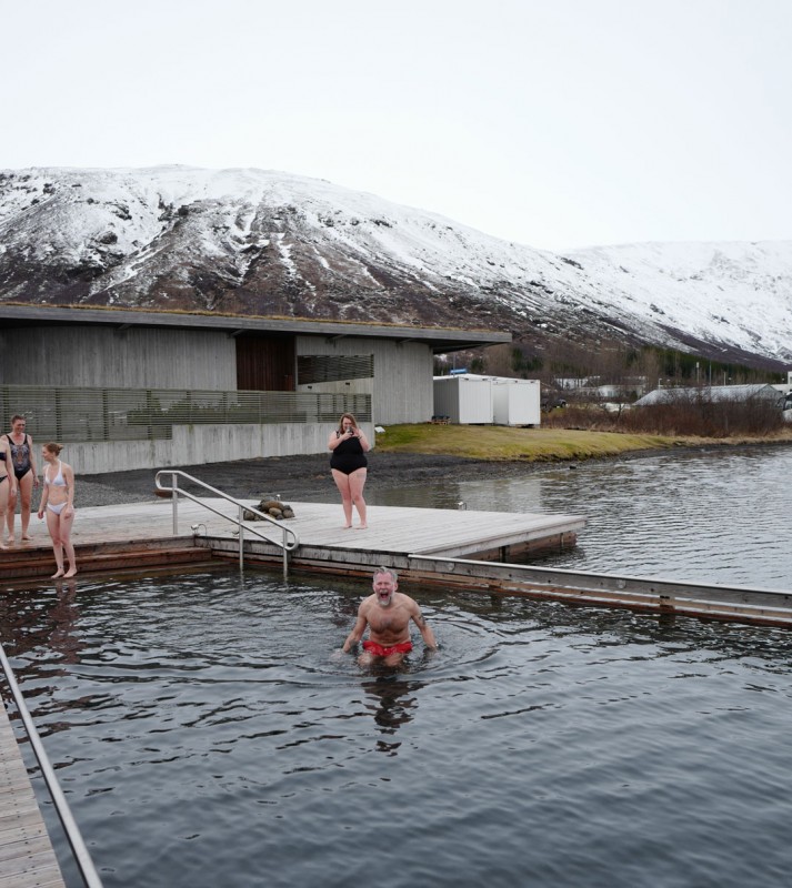 Det er ikke så avskrekkende som det høres ut som. Island har tross alt varme kilder. Vi skal til Laugarvatn Fontana der vi kan bare i forskjellige basseng. Jeg liker især den som holder en temperatur på ca 42 grader. Herlig! Noen av de jeg reiser sammen med velger å gå ut i innsjøen og bade i det 4-graders kalde vannet. Det gjør ikke jeg altså.