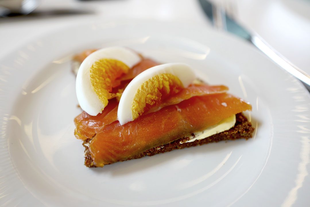 En liten matbit før vi drar. Denne deilige blingsen består av søtt rugbrød som er bakt i jorden. Den serveres med deilig, røkt ørret og egg. Anbefales!