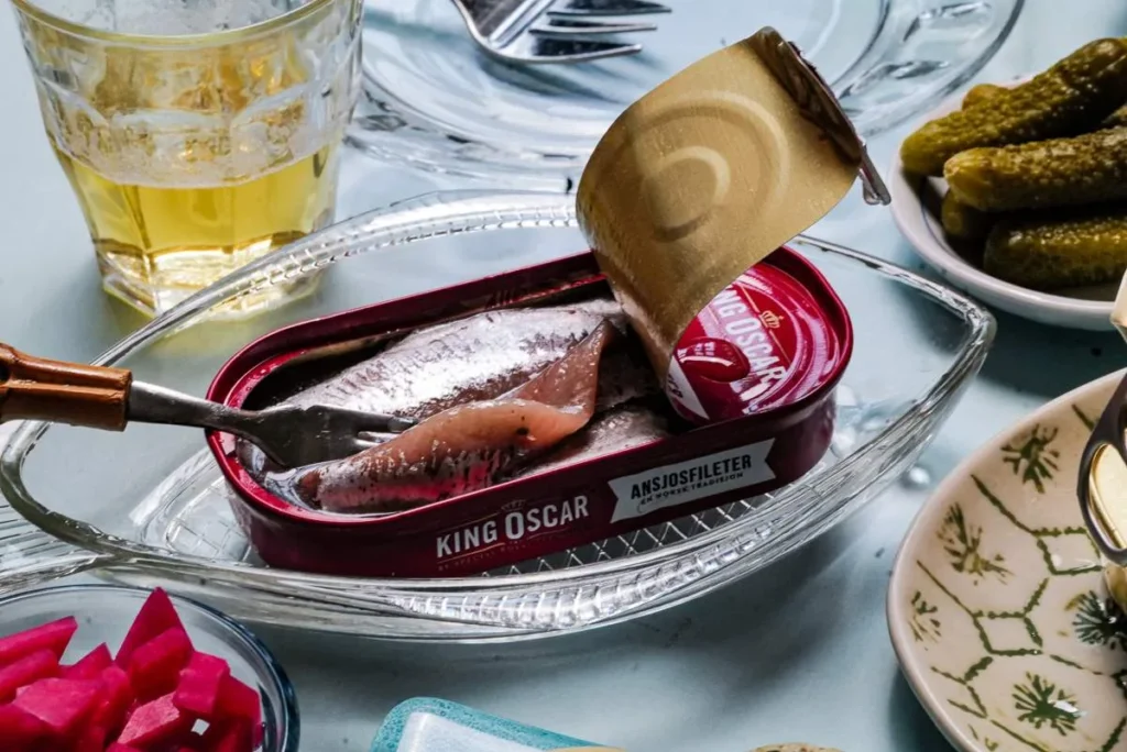 Det store trendproduktet i utlandet. Ekstra umami til andre retter. Hva hadde en cæsardressing vært uten ansjos? Gir ekstra smak til tomatsaus. King Oscars ansjoser finner du i kjøledisken i utvalgte matvarebutikker. Det er ikke samme produkt som du finner i Nord-Spania og ellers i Europa. Ansjos er ikke egen fisketype, men består av brisling som blir til ansjos gjennom en spesiell foredlingsmetode. Fisket i de kalde norske havområdene og Nordsjøen.