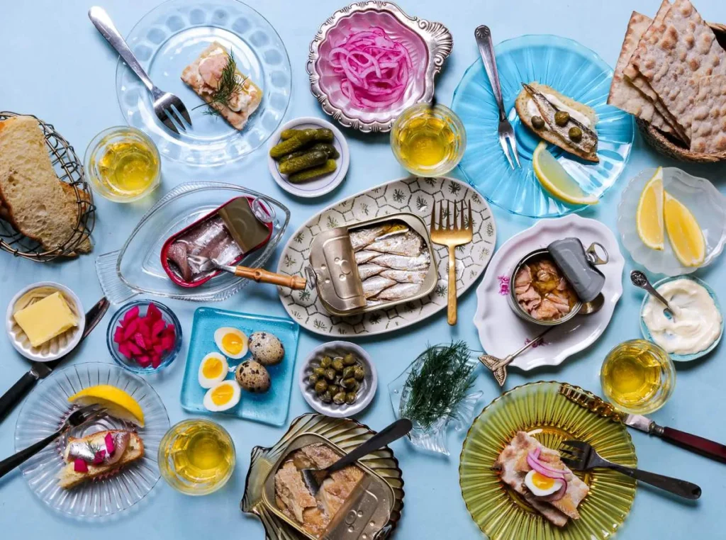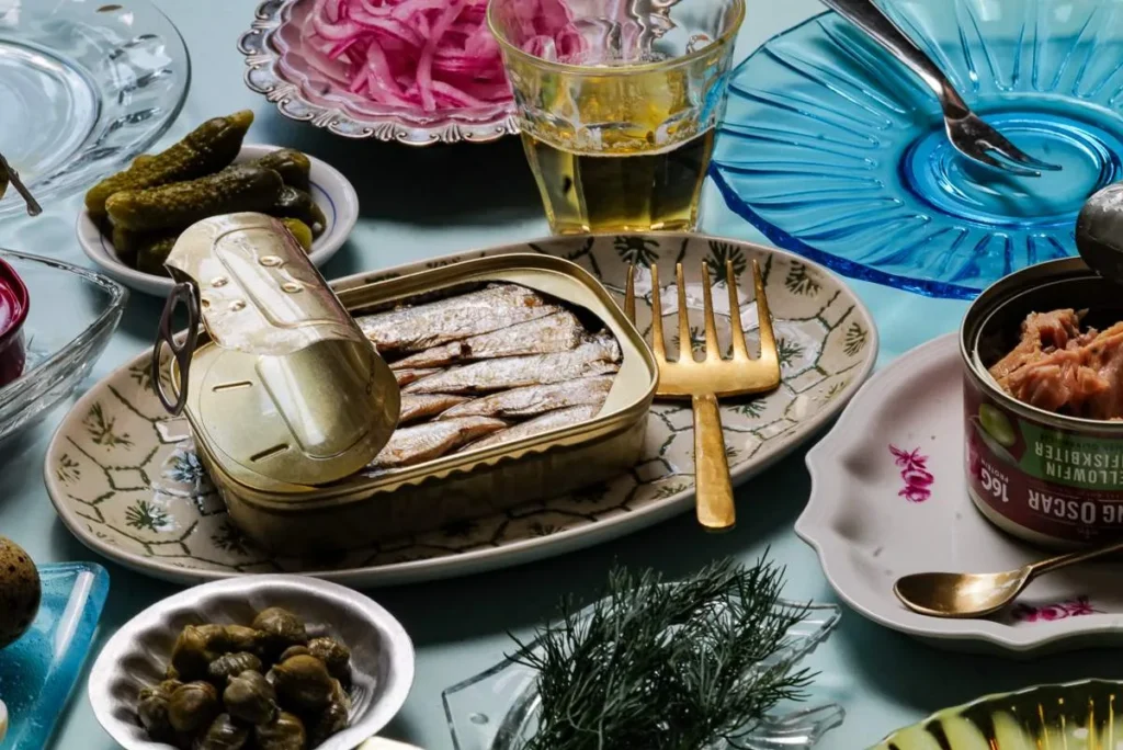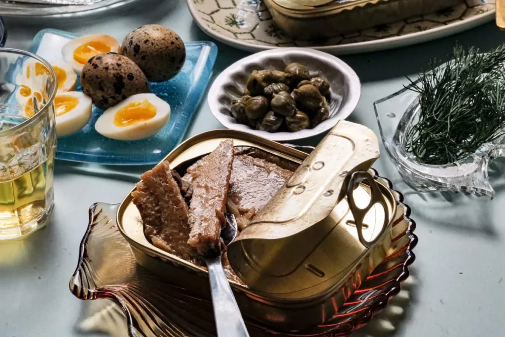 Sjømatprodukter på boks er ansett som luksus i land som Portugal og Spania. Det finnes egne butikker som kun selger hermetikk av fisk og skalldyr. Jeg er en slik som hamstrer med hjem fra utlandet for å kose meg med det ved en senere anledning. Sjømat på boks er det perfekte følge til et glass øl, vin, sherry eller vermut. Du trenger egentlig ikke mer. Du må selvsagt ikke drikke alkohol til denne typen mat. Alkoholfritt øl, kombucha og alkoholfri vin er også helt perfekt.