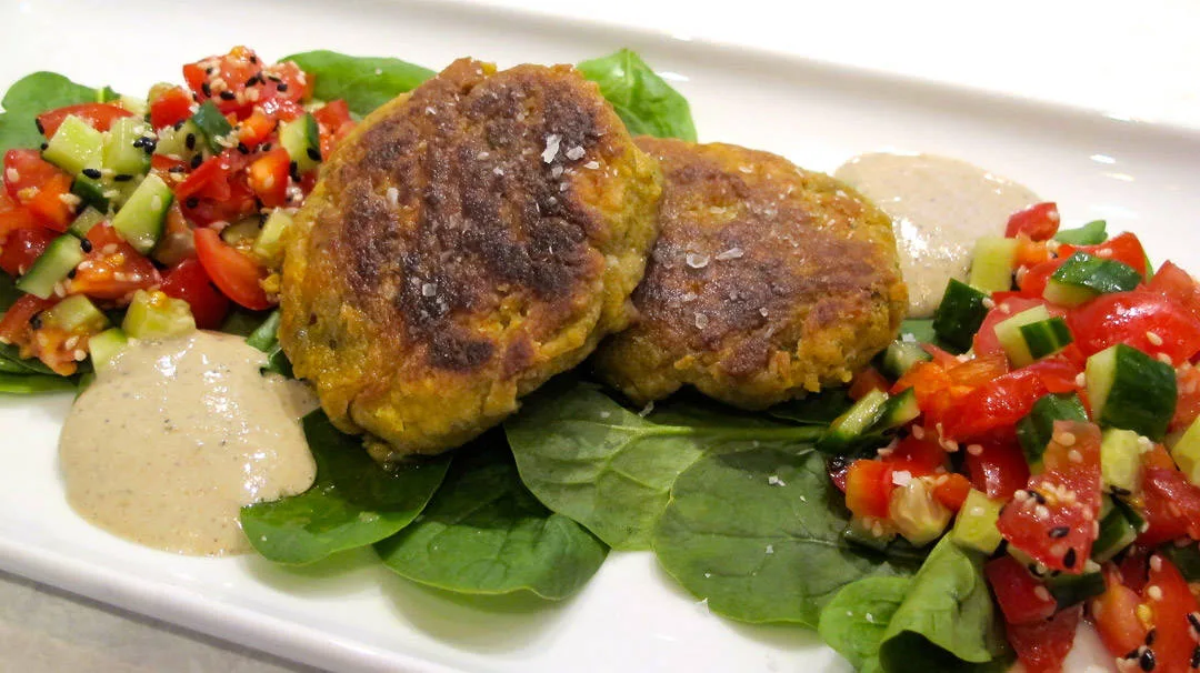 Form til boller eller burgere og stek crispy i en varm panne med nøytral olje. Bruk litt mel for å forme bollene/kakene.